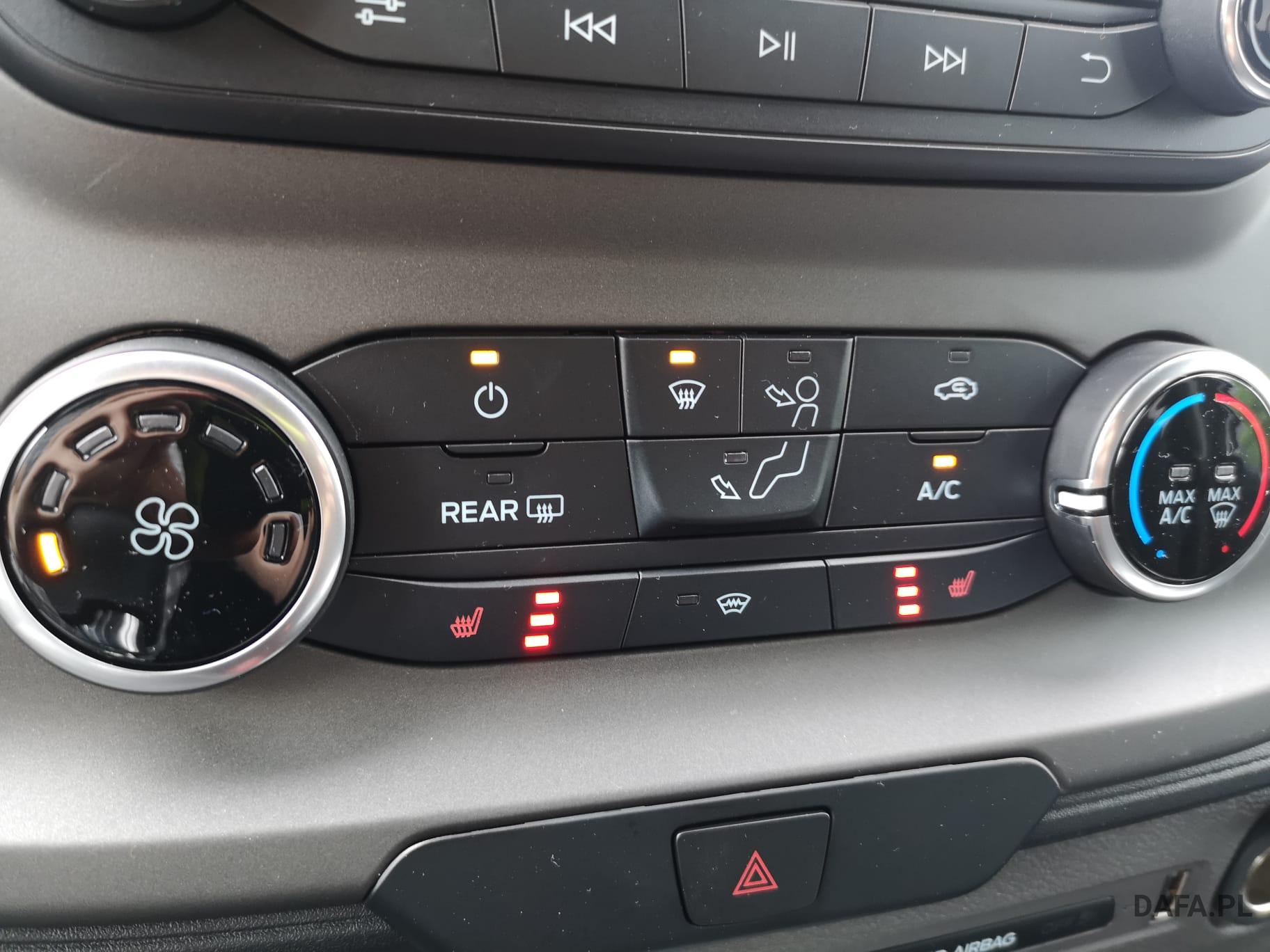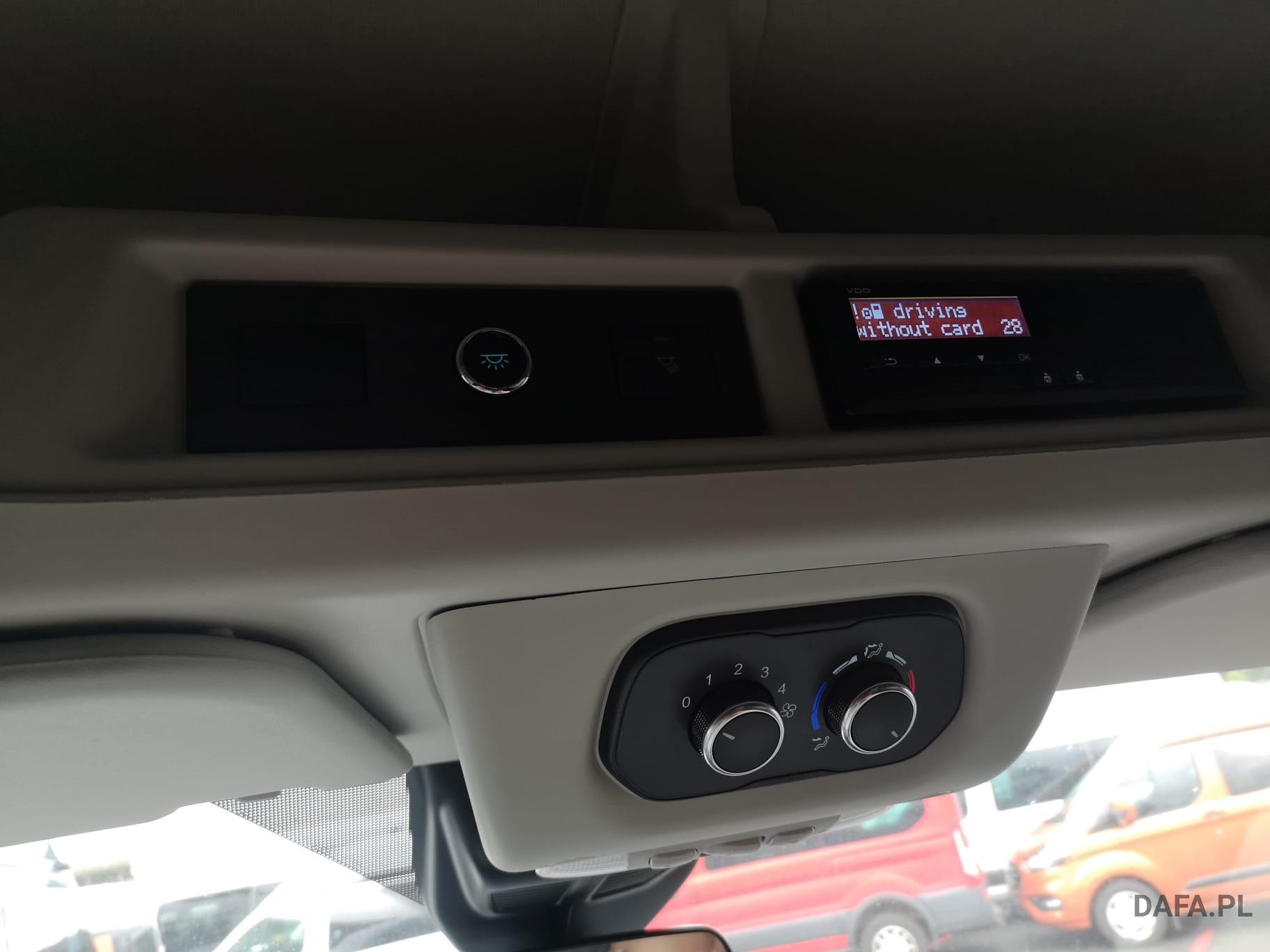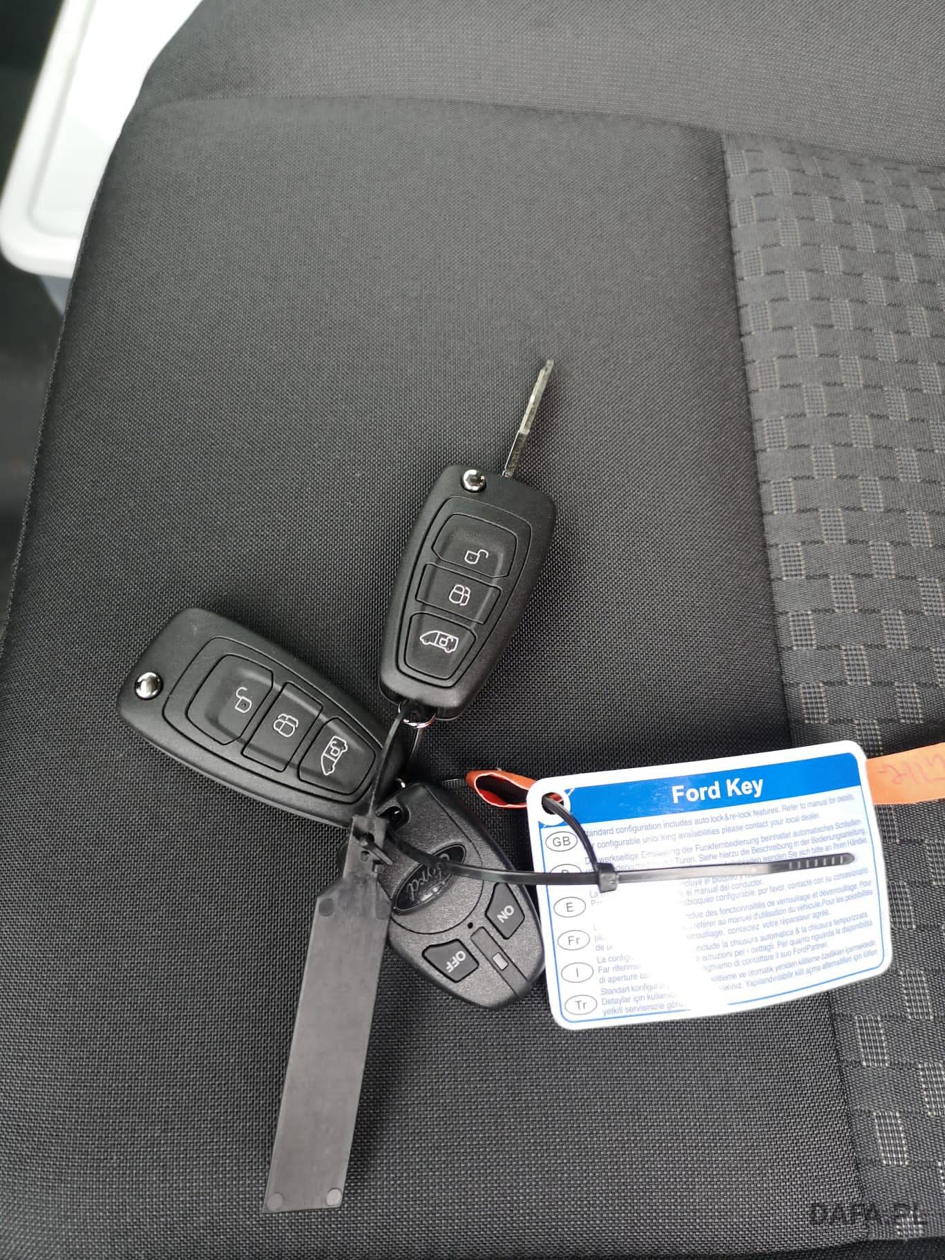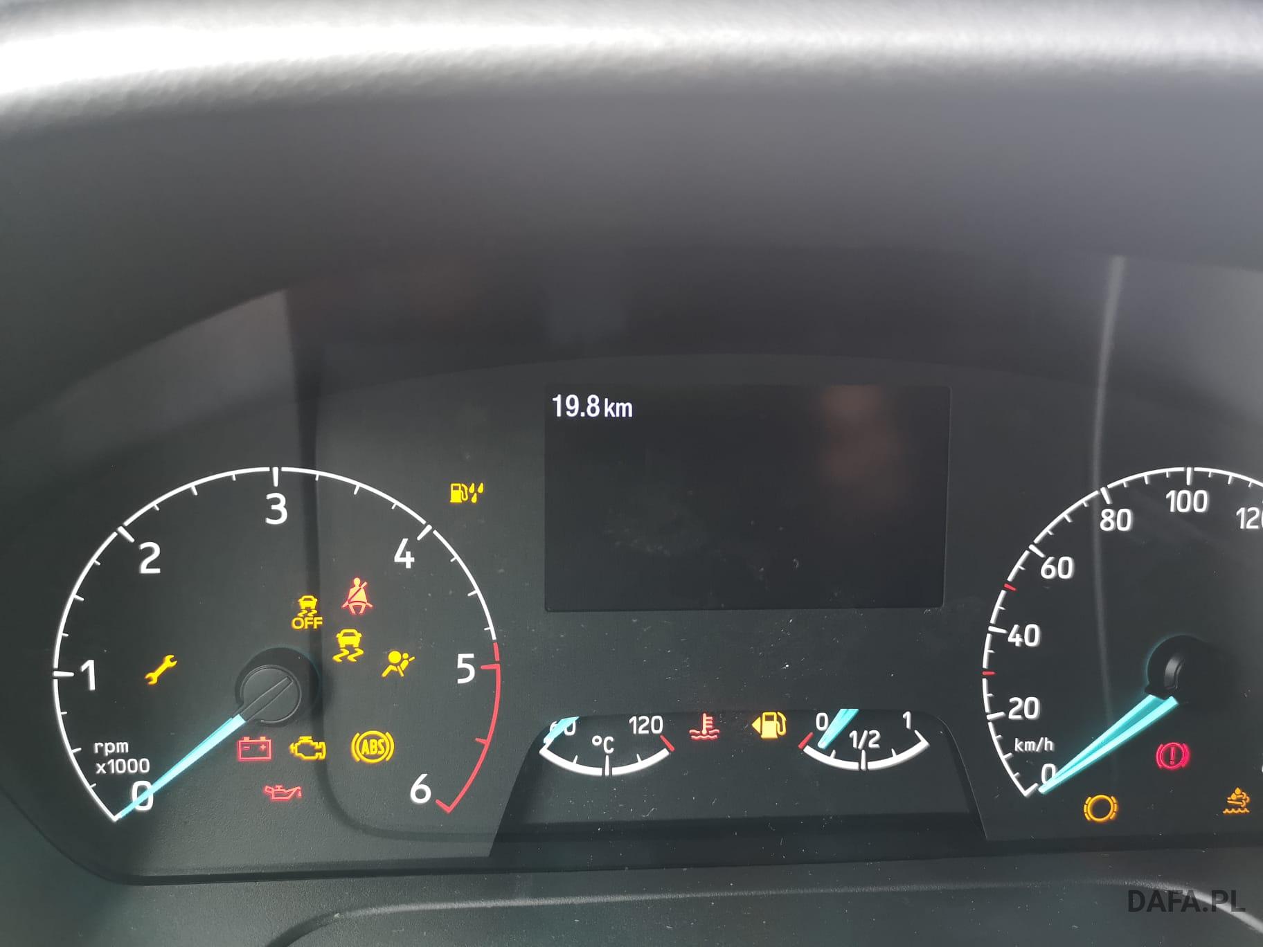 Lusterka zewnętrzne elektrycznie regulowane, podgrzewane i składane - ze zintegrowanymi kierunkowskazami. Reflektory ze statycznym doświetlaniem zakrętów Przedni chlapacz Gniazdo: złącze 12 V w bagażniku (słupek D) lusterko zewnętrzne elektr. składane, okno w przestrzeni ładunkowej/FG: - przesuwne, 2 rząd prawy, drzwi tylne skrzydłowe z przeszkleniem (kąt otwarcia 256 stopni), chlapacze z przodu, gniazdo 12V w przestrzeni ładunkowej/pasażerskiej 2 akumulatory/poduszka powietrzna (pasażer boczne) / poduszka powietrzna po stronie kierowcy (ABS ) z elektronicznym rozdziałem siły hamowania (EBD) - (ESP) z kontrolą trakcji (TCS) - Wspomaganie ruszania pod górę - Asystent bocznego wiatru – asystent hamowania bezpieczeństwa – zabezpieczenie przed dachowaniem – wspomaganie hamowania awaryjnego ze światłem hamowania awaryjnego – dodatkowo ze stabilizacją przyczepy tylko w połączeniu z zaczepem przyczepy (za dopłatą) - Lusterka zewnętrzne, elektrycznie regulowane i podgrzewane - ze zintegrowanymi kierunkowskazami - Podłoga gumowana (w kabinie kierowcy i przedziale pasażerskim) - Dach komputera pokładowego, wysoki - wraz z bagażnikiem wzdłużnym w kabinie pasażerskiej - Dach, schowek podsufitowy, przednia podsufitka kompletna Dwuskrzydłowe tylne drzwi o kącie otwarcia 256° (z oknem) - z podgrzewanymi tylnymi szybami - obrotomierz - Trzecie światło hamowania - Okno: okno na zawiasach, 4. rząd po lewej i prawej stronie - Przednie szyby elektryczne - Gaśnica - przed siedzeniem w przypadku podwójnego siedzenia pasażera - obok w przypadku pojedynczego siedzenia pasażera Hamulec ręczny — Ford Easy Fuel — wygodny korek wlewu paliwa i ochrona przed zatankowaniem niewłaściwego paliwa - Podgrzewana przednia szyba - Ogranicznik prędkości 100 km/h - Skrzynia biegów: 6-biegowa skrzynia biegów - Zamykany schowek z pokrywą - Opóźnione oświetlenie wnętrza przednimi lampkami do czytania - Oświetlenie wnętrza: oświetlenie przedziału pasażerskiego z obwodem opóźniającym - Klimatyzacja tylna - w tym klimatyzator tylny z nagrzewnicą wodną - Zbiornik paliwa 70 l Lakier: met - Kolumna kierownicy z regulacją wysokości i zasięgu - System kluczyków MyKey - indywidualnie programowalny drugi kluczyk - Pakiet: pakiet tylnych siedzeń 8 - 17/18 miejsc - 1. rząd: podwójne siedzenie po lewej stronie ze wspornikiem ISOFIX - 2. rząd: podwójne siedzenie po lewej, pojedyncze siedzenie po prawej - 3. rząd: podwójne siedzenie po lewej, pojedyncze siedzenie po prawej - 4. Rząd: podwójne siedzenie po lewej, pojedyncze siedzenie po prawej - 5. rząd: rząd czterech siedzeń (podwójne siedzenie środkowe/pojedyncze siedzenia zewnątrz)) - pakiet: pakiet technologiczny 9 - szyba przednia podgrzewana - wycieraczki szyby przedniej z czujnikiem deszczu - system parkowania z przodu iz tyłu - asystent hamowania awaryjnego, aktywny (oparty na kamerze) - asystent pasa ruchu / parktronic z ostrzeżeniem o zmęczeniu i asystentem świateł drogowych ; dodatkowo z asystentem utrzymania pasa ruchu - asystentem reflektorów z czujnikiem dzień/noc - tempomat - światła przeciwmgielne - system audio Ford - Filtr cząstek stałych: Filtr cząstek stałych - Radio: System audio Ford z 4-calowym wyświetlaczem wielofunkcyjnym - Podłączone radio (FM/AM) - Odbiór radia cyfrowego DAB/DAB+ (Digital Audio Broadcasting) - Informacje FordPass Connect o aktualnym stanie, lokalizacji i sterowaniu z aplikacją FordPass - Wyświetlacz wielofunkcyjny TFT 4" (przekątna ekranu 10,16 cm) - Cztery głośniki, antena Zintegrowany panel sterowania i pilot audio na kierownicy - Interfejs Bluetooth, port USB i zestaw głośnomówiący - Asystent połączenia alarmowego - Wsparcie dla Android Auto i Apple CarPlay – Koła: Podwójne opony – Stalowe felgi 6 J x 16 z oponami 195/75 R 16 - Reflektory halogenowe świateł mijania ze światłami do jazdy dziennej - Drzwi przesuwne: Drzwi przesuwne prawe Stopień drzwi przesuwnych prawe elektryczne - Chlapacze tylne Boczne listwy ochronne Poszycie ścian bocznych wysokie Wspomaganie kierownicy Fotele w przedziale pasażerskim: regulowane oparcia foteli - podłokietniki do przejścia fotele: pakiet 13 - fotel kierowcy regulowany w 4 kierunkach (przód/tył, oparcie, nachylenie siedziska, Wysokość) - Podwójne siedzenie pasażera ze schowkiem pod indywidualnie składanymi poduszkami siedzeń - Zagłówki z regulacją wysokości, podłokietnik dla kierowcy wewnątrz - Podparcie lędźwi, manualne (siedzenie kierowcy) - Pokrycie siedzenia: tkanina Zderzak tylny z systemem Start-Stop ze zintegrowanym stopniem - tachograf przedniego zderzaka, cyfrowy immobiliser, szyby termoizolacyjne, przyciemniane średnio (od słupka B) - centralny zamek z pilotem - 2 kluczyki w tym jeden z pilotem centralny zamek z pilotem - dodatkowo z drugim kluczykiem , składany, ze zdalnym sterowaniem z ogrzewaniem postojowym centralnego zamka, elektrycznym (PTC)